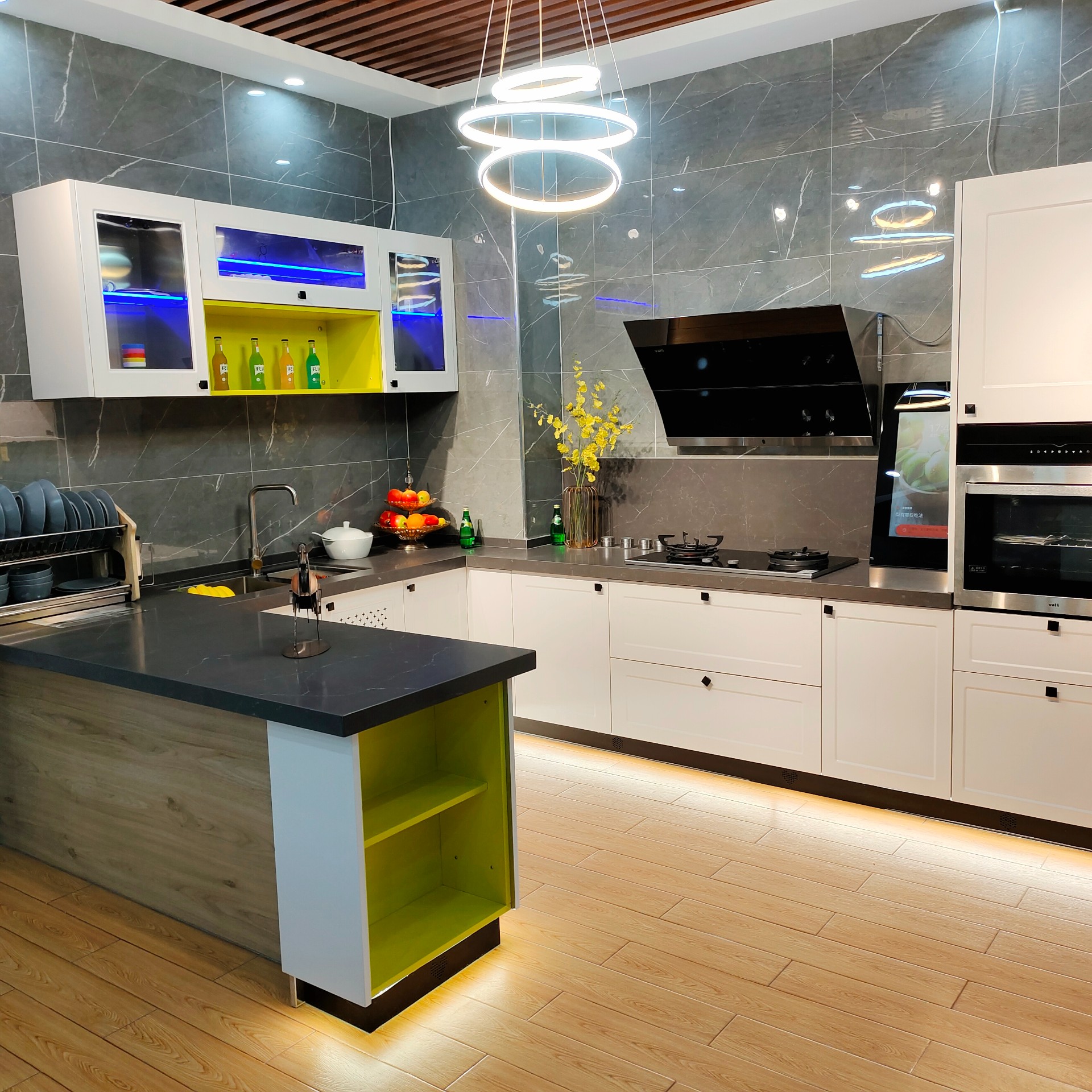 這是我們客戶家的櫥柜。門板采用的是市面上一直流行的啞光模壓系列,優(yōu)點是整體效果好,無須封邊,一次成型,防水、耐磨、易擦洗,而且模壓通過門板的造型可設(shè)計出不同的裝修風格